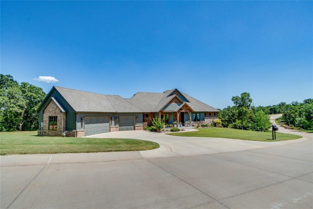 Set on a wooded 2.5-acre lot in East Edmond's gated Pravada community, this custom two-story home offers peaceful privacy with a full walkout basement. The main level features an open kitchen with a built-in commercial-style refrigerator, Induction stove top, walk-in pantry, and spacious dining area that opens to a covered balcony overlooking the trees. The primary suite is a true retreat with an oversized walk-in closet.The walkout level includes a private guest suite, second living area with fireplace, bonus room, safe room, and covered patio. Located in Edmond Public Schools and just minutes from Arcadia Lake, shopping, and dining.